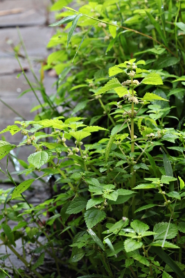 | イラクサ科には小型で、湿りけのある環境を好むグループがいくつかあって、ミズ属もその1つです。さまざまな夏草が生い茂る谷戸の湿地では、地味なミズは埋もれがちですが、光沢のある葉は意外と目につきます。名前の由来ははっきりしないものの、水の滴る環境に生えて瑞々しいようすからついたものかもしれません。広町緑地は最近、錯綜する散策路の整備や地図の掲示が進み、歩きやすくなったのですが、ミズはそれでも足を向けにくいズブズブのところでよく群生しています。 | |