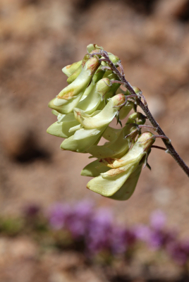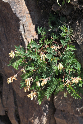 リシリオウギは名前のとおり利尻山に分布するほか、大雪山や白馬岳、八ヶ岳からも知られていますが、本州では近縁のシロウマオウギやタイツリオウギにくらべると、ずっと目にする機会が少ないように思います。花の色はクリーム色で、シロウマオウギより濃く、タイツリオウギより薄い印象ですが、はっきりとした区別点は萼で、シロウマオウギとタイツリオウギは萼全体に毛が生えるのに対し、リシリオウギは萼の縁だけに毛が生え、そのほかはツルツルしています。 | |