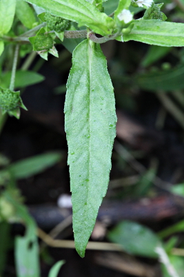 | タカサブロウは水田や湿地に生える1年草で、水稲の穂が黄金色に色づきだすころ、直径1cmほどの白い花をつぎつぎに咲かせます。水田雑草の常で、水稲の収穫が終われば一緒に鋤きこまれてしまいます。ところがそこはよくしたもので、早めに開花したものからこぼれ落ちた種子が散布され、翌年の発芽、生長につながっていきます。水稲の伝搬とあわせて持ちこまれた史前帰化植物とされますが、最近ではアメリカタカサブロウにおされてしまい、よほど注意して確認しないと気づけません。 | |